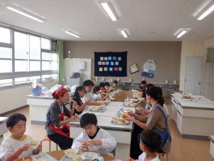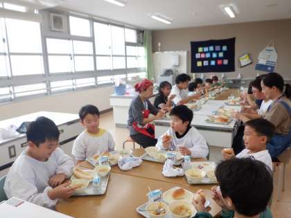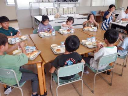 1・2・6年生 給食の様子 公開日 2024/10/18 更新日 2024/10/18 学校紹介 今日の給食は、コッペパン、ジャム、ポトフ、ゴボウサラダ、牛乳でした。1・2・6年生で給食を食べました。1年生も積極的におかずを増やしてしっかり食べていました。