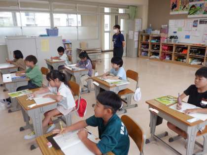 「くじらぐも」の一部を視写しました。鍵かっこや〇を書く位置に気を付けて書きました。