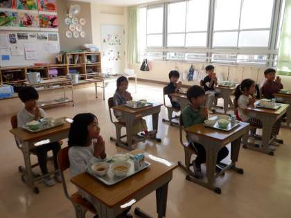 1年生 給食の時間 公開日 2024/10/21 更新日 2024/10/21 1年 今日の給食は、ご飯、中華風コーンスープ、厚揚げのチリソース、牛乳でした。お昼からの練習に備えて、モリモリ食べていました。