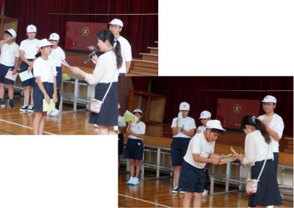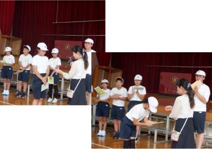 連合運動会表彰式 公開日 2024/10/21 更新日 2024/10/21 学校紹介 17日に開催された連合運動会の表彰式をしました。100m走や50mハードル走で入賞となりました。素晴らしい結果は、地道に練習に取組んだ成果ですね。