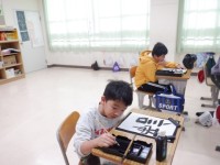 いろいろなつなぎ方で、豆電球と乾電池をつなぎ、明かりがつくとき、つかないときのつなぎ方について考えました。