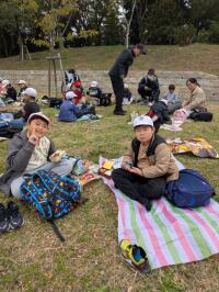 お昼を食べて、バスで学校に戻ります。下校は予定通り、全学年14時35分頃です。