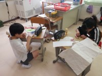 ボンドで袋状にくっつけたり,手足をつけたりしていました。集中して「お友だち」を作...