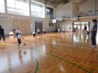 ボールをついたり,ドリブルしたりして,ボールとなかよくなる動きで遊びました。