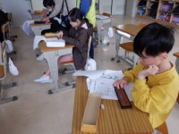 「ギコギコ トントン」を完成させたり、終わった人は作品袋を作ったりとそれぞれの課...