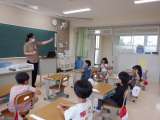 「きゅうしょく」や「おもちゃ」など、小さい「ゃ・ゅ・ょ」のつく言葉について学習し...