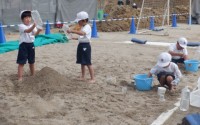 お砂遊びをしました。友だちと一緒に大きな山を作ったり,深く掘ったりして遊んでいま...