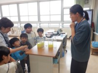 水のかさを比べました。同じ入れ物でないと,高さで比べられないことがわかりました。