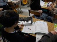 教科書にある昆虫の写真をみて、ノートに描いていました。足の数等、昆虫の特徴に気を付けて描いていました。