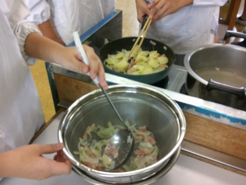 「ベーコンポテト」を作りました。どの班も美味しそうにできていました。またご家庭でも作ってみてほしいと思います。