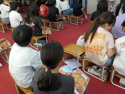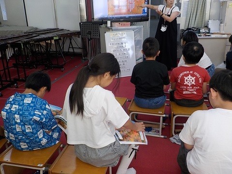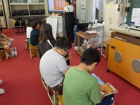 「もみじ」について、歌詞を読み、どのような景色が頭に浮かぶのかを考えていました。