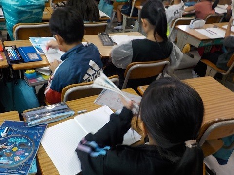 「ちいちゃんのかげおくり」の学習です。学習の最後に、感想を書きました。はじめの感想との違いを考え、交流していました。