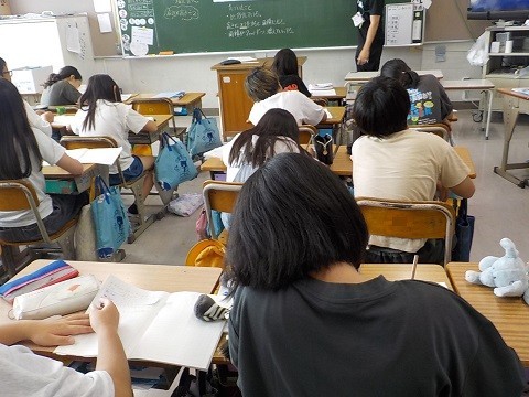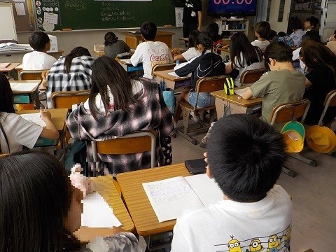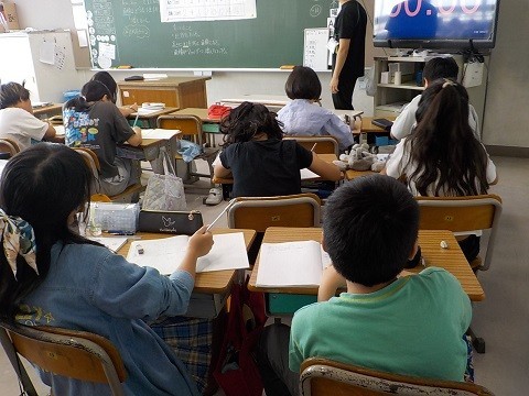 面積の学習です。高さが変わると、面積の大きさはどのように変化するのか、表を使い考えていました。