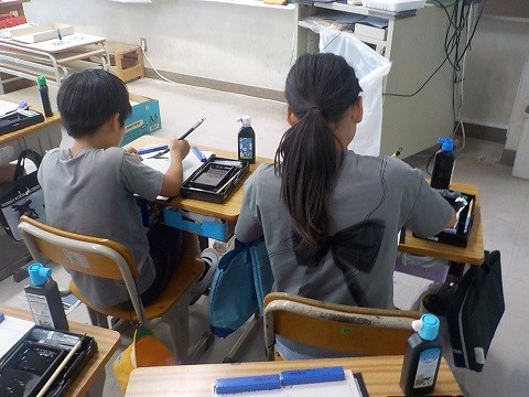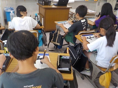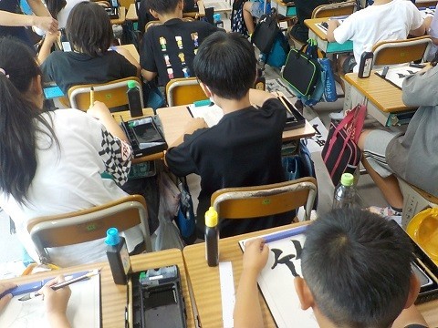 毛筆で「竹笛」を書いていました。ていねいに書くことを意識して取り組んでいました。