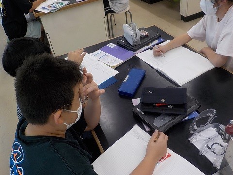 水溶液の学習です。塩酸にとけた金属について、調べたことをノートにまとめていました。