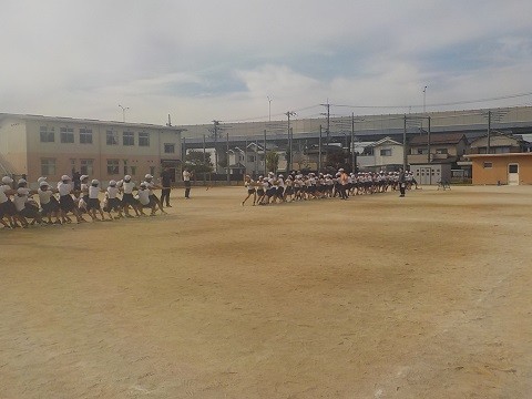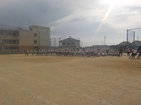 連合運動会に向けての練習です。今日は、団体種目のつなひきの練習です。