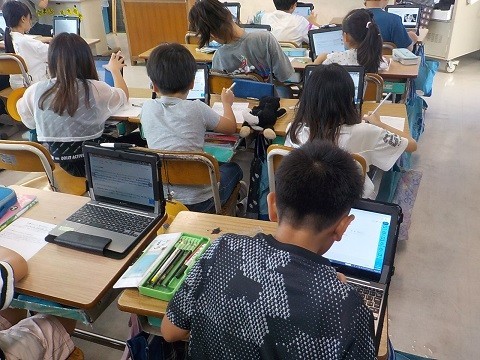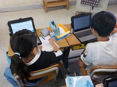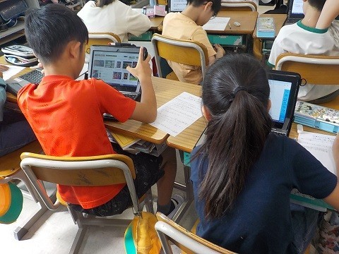 仕事について調べています。仕事には、どのような工夫があるのかを、タブレットを使って調べていました。