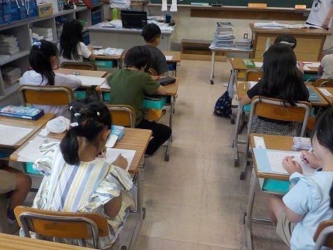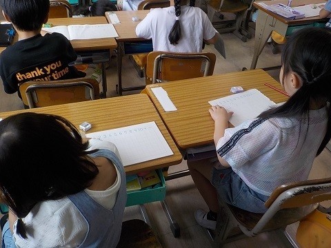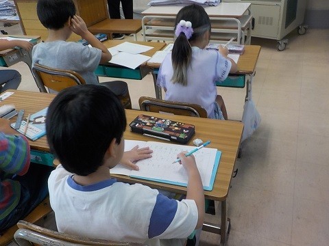 たし算とひき算の復習問題を行っていました。9+1+3や9-3-2の計算を行っていました。