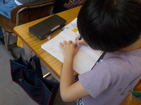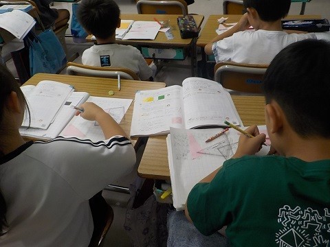 三角形と四角形の学習です。三角形の特徴について調べていました。
