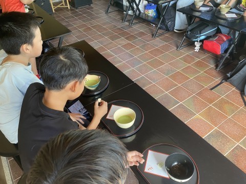 昨日の4年3組,4組と同じように,茶室でお茶体験をしました。