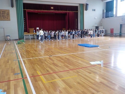 連合音楽会に向けての練習です。本番を想定した並び方の練習を行っていました。
