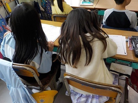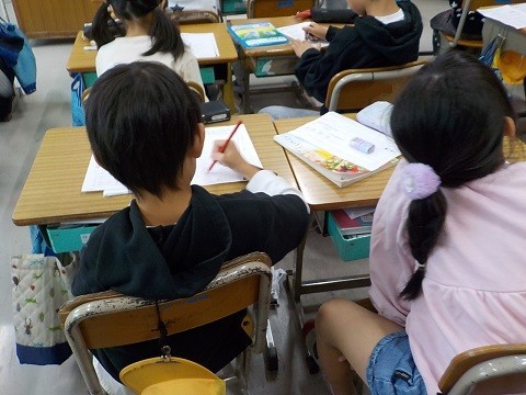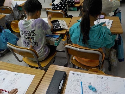 算数プリントの答え合わせを行っていました。計算の工夫の問題がありました。