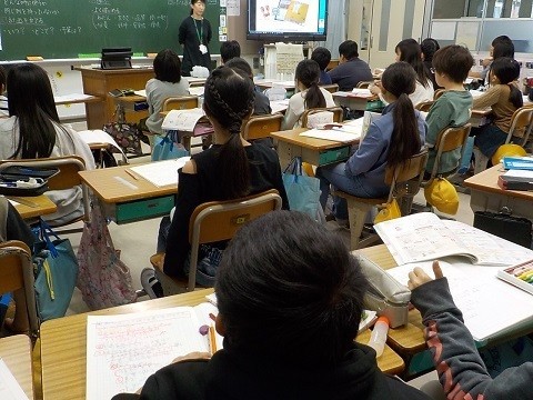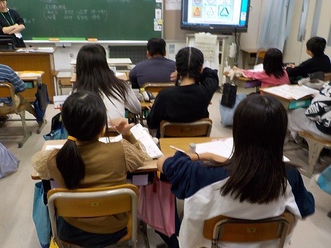 買い物の学習です。目的にあった選び方、買い方について考え、交流していました。