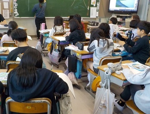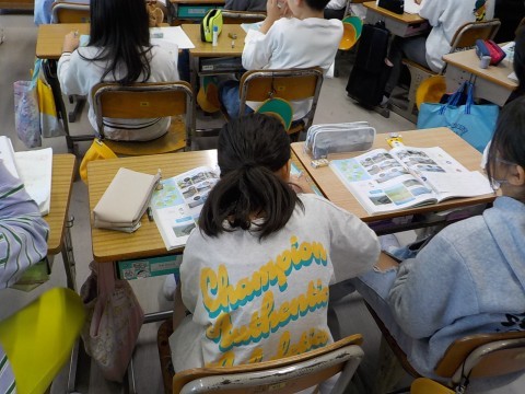 流れる水のはたらきの学習です。下流では石の大きさや水の流れがどのようになっているのかを確認していました。