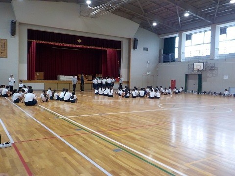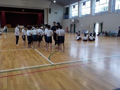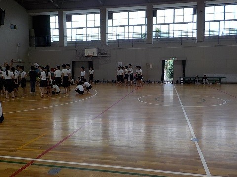 体育館で、体育参観に向けての練習を行っていました。技の確認を行っています。