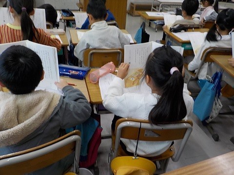 「みきのたからもの」の学習です。場面の様子を教科書から読み取っていました。