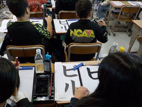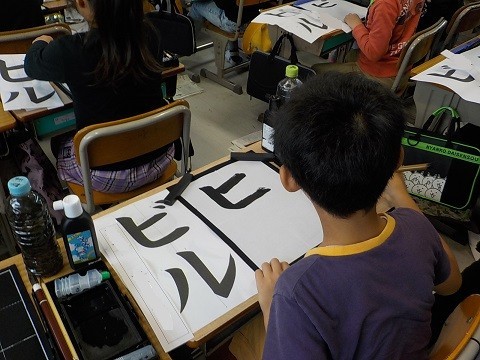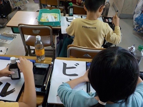 毛筆で、「ビル」を書いていました。ていねいに練習しています。