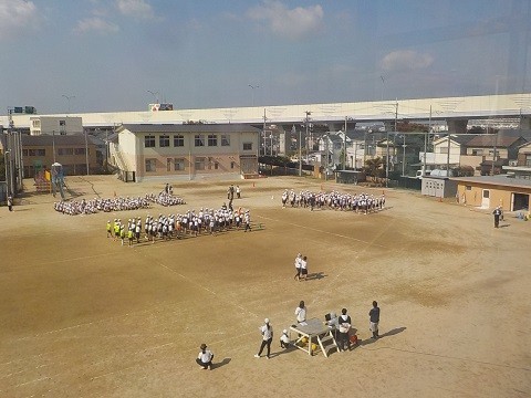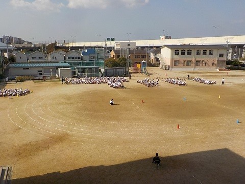 体育参観に向けて、高学年が合同練習を行っていました。堺っ子体操や児童席の場所、演技や競技の順番等を確認しました。