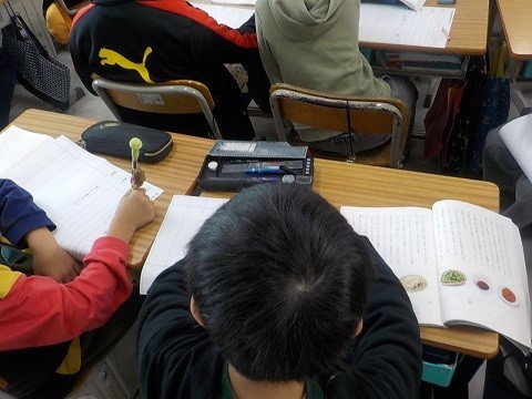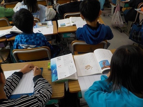 「すがたを変える大豆」の学習です。段落を確認し、大豆の工夫をさがしていました。