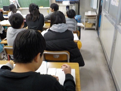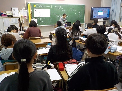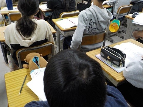比例の学習です。表をみて、2つの関係を式に表していました。
