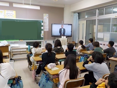 テレビ朝礼 公開日 2025/11/10 更新日 2025/11/10 学校行事 テレビ朝礼の様子です。元気よく校歌を歌った後は、校長先生からのお話です。いよいよ今週末にせまった体育参観について、がんばってほしいというお話や、あいさつについてのお話がありました。美術展の表彰もありました。