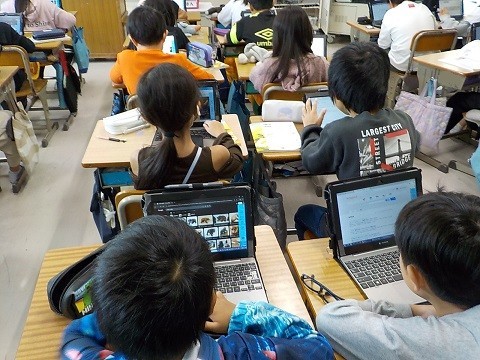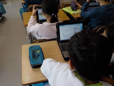 工芸品のみ力について、調べたことをタブレットでまとめていました。