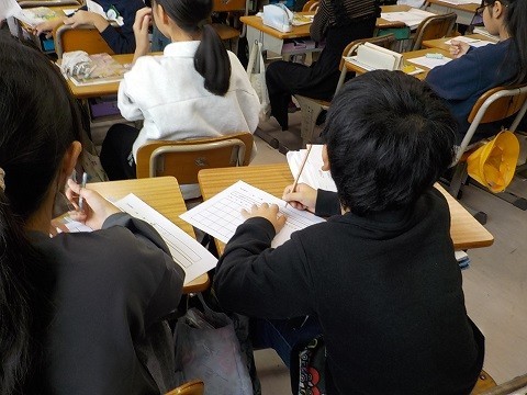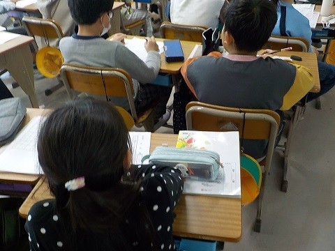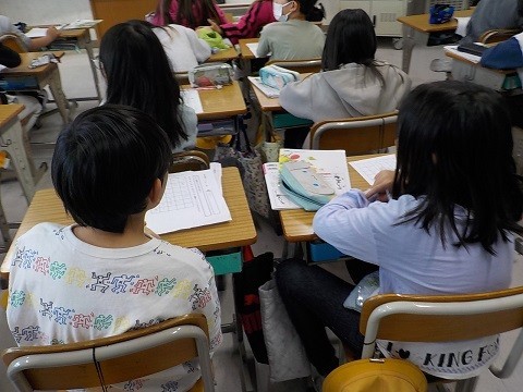 俳句の学習です。五、七、五の音の響きのよさを感じた後に、実際に俳句をつくっていました。