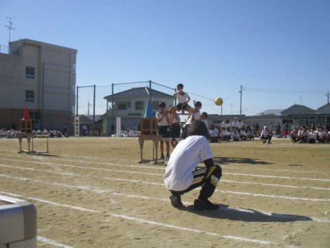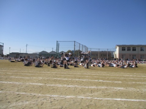 6年生は、団体競技「ローハイド」、団体演技「組体操~最高~」です。小学校生活最後の体育参観で、がんばってきたこと、成長してきたことを表現しました。
