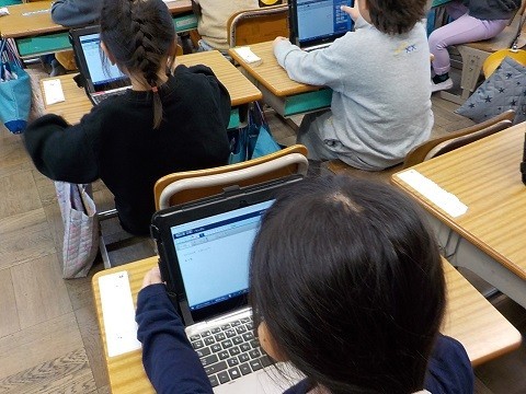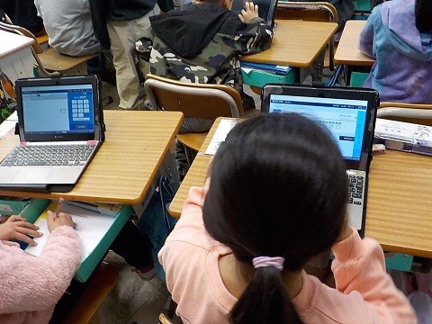 タブレットのドリルパークで、算数の練習問題を行っていました。