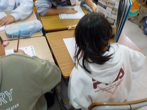 「すがたを変える大豆」の学習です。グループで、大豆やお米、麦がどのような姿になっていくのかを調べていました。