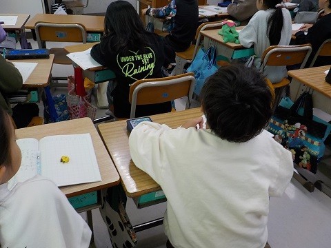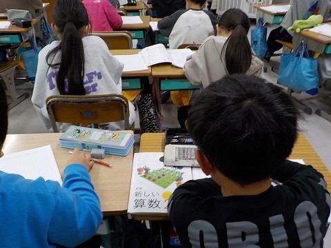 かけ算の学習です。文章の問題から、7の段の学習を行っていました。