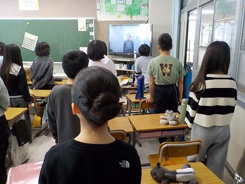 テレビ朝礼 公開日 2025/12/01 更新日 2025/12/01 学校行事 テレビ朝礼の様子です。元気よく校歌を歌い、校長先生のお話を聞きました。表彰と、児童会役員さんからのお話がありました。今日から12月です。長かった2学期も、まとめの時期になりました。