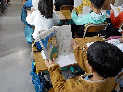 3年とうげです。はじめに読んだ感想を交流していました。