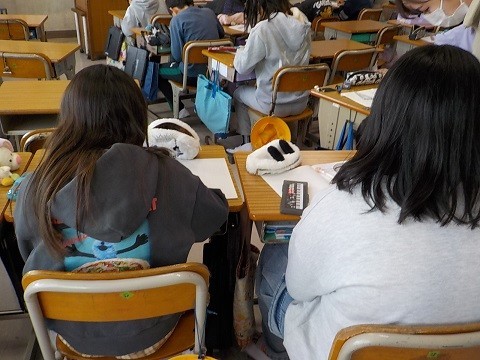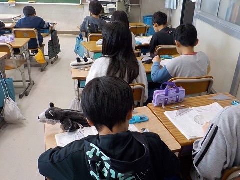 分度器を使い、平行四辺形の作図を行っていました。