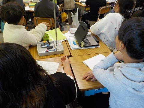 ふりこの学習です。変える条件と同じにする条件を確認し、実験を行っていました。