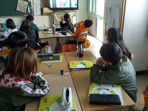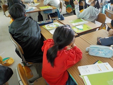 電気の学習です。回路がどのような状態の時に豆電球に明りがつくか、デジタル教材で確認していました。
