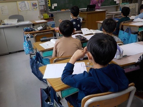 2年生 国語 公開日 2025/12/08 更新日 2025/12/08 2年生 「お話のさくしゃになろう」の学習です。お話を書くために、「はじめ」「なか」「おわり」にどのような内容を書くのかをワークシートに書きだしていました。