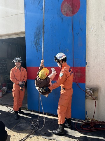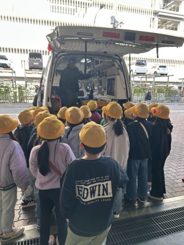天気も良く、消防士さんの訓練を見せもらえたり、救急車や消防車の中まで見せてもらうことができました。