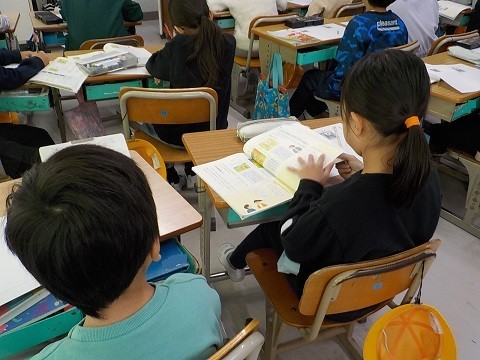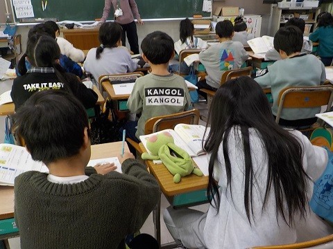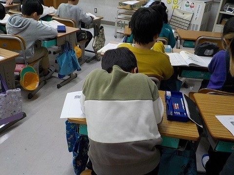 「お話の作者になろう」の学習です。お話を書くために、「中」の内容を考えていました。