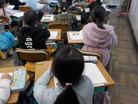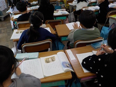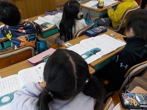 「たぬきの糸車」です。たぬきの行動について、読み取りを行っていました。